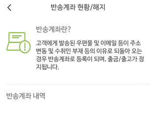 반송계좌를 들어가면 반송되어 있는 계좌가 보이고 해당 계좌에서 해지를 누르면 해지가 가능합니다.