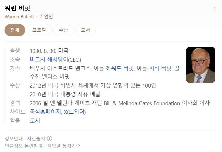 현재 버크셔 해서웨이의 CEO를 맡고 있으며, 1930년 8월 30일 생입니다.