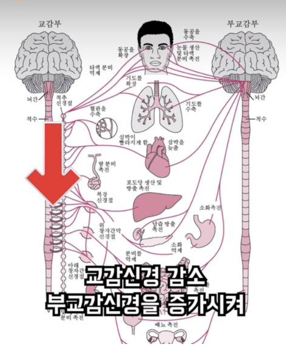 그러면 교감신경이 감소되고 부교감 신경이 늘어나는데요.