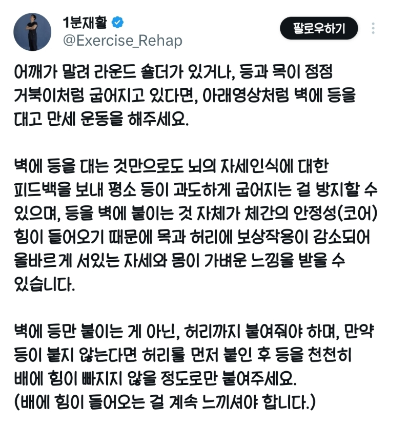 혹시 라운드 숄더이거나, 등 이나 허리가 아프다면 꼭 한번 시도해보시기 바랍니다.