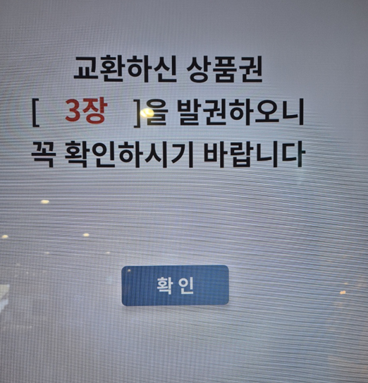 상품권이 키오스크 아래에서 잘 나오는지 확인하시고 가시면 됩니다.