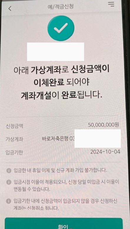 입출금 계좌가 없기 때문에 가입시 가상계좌로 신청금액을 입금해서 계좌 개설을 진행하게 됩니다.