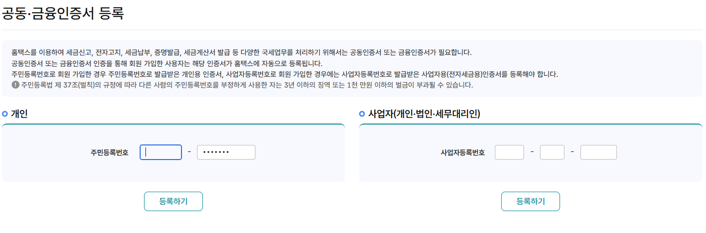 공동인증서가 아직 등록되지 않았으면 등록해서 로그인 해주시구요.