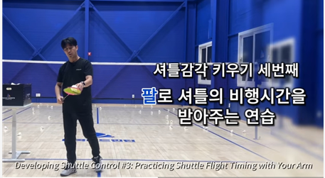 두번째 손목으로 셔틀의 시간을 받아주는 연습. 결국 배드민턴은 손목힘을 쓰는 것인데요.