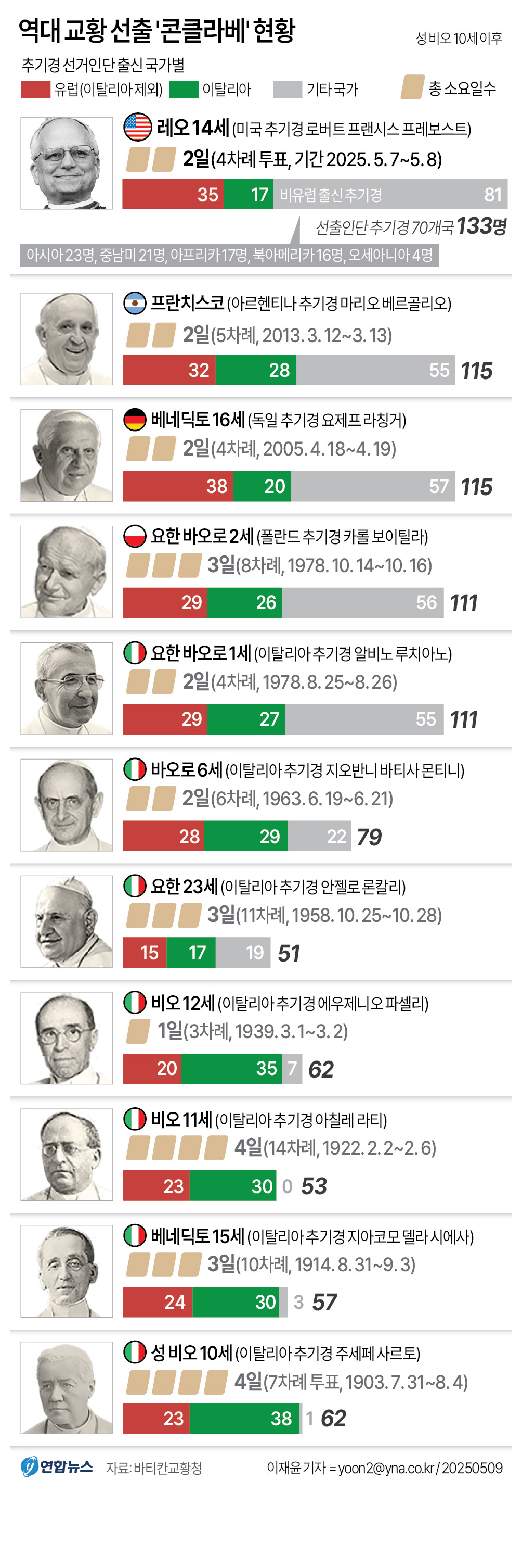 133명의 추기경 선거인단은 8일(현지시간) 제267대 교황으로 미국의 로버트 프랜시스 프레보스트(69) 추기경을 선출했습니다.