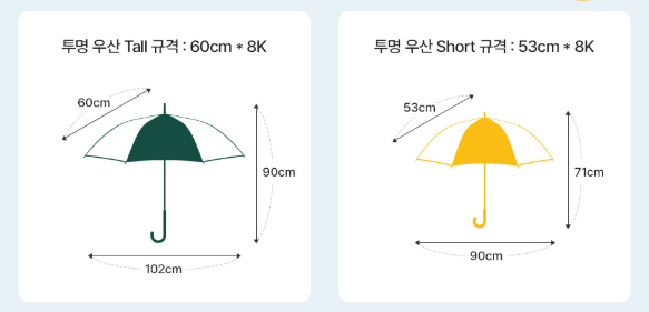 우산은 톨이 60cm 숏이 53cm 입니다.