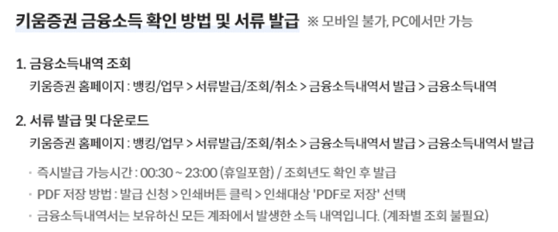 키움증권을 사용하는 사람 중에서 종합과세 대상 금융소득을 2천만원 초과하신 분들은 종합소득세 신고를 다시하셔야 하는데요.