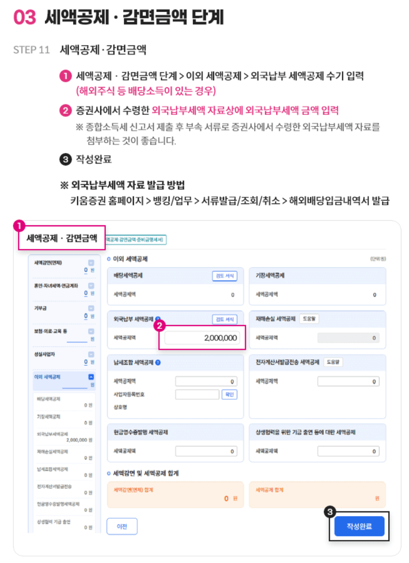 세액공제/감면 금액 - 이외의 세액공제 - 외국납부 세액공제 칸에 적어주시면 됩니다.