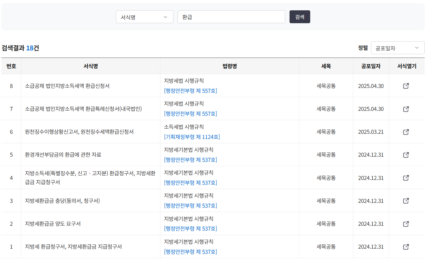환급이라고 검색하시면 가장 먼저 나오는 것이 지방세 환급청구서 입니다.