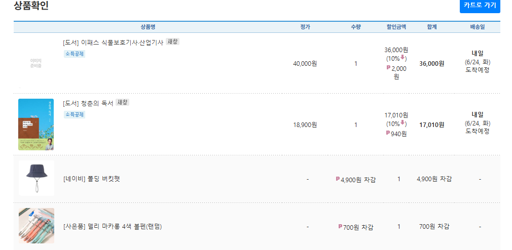 급하게 결제했네요.