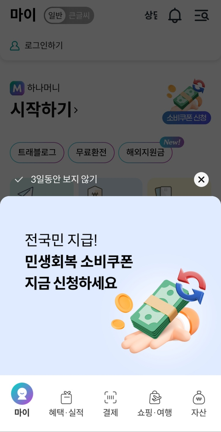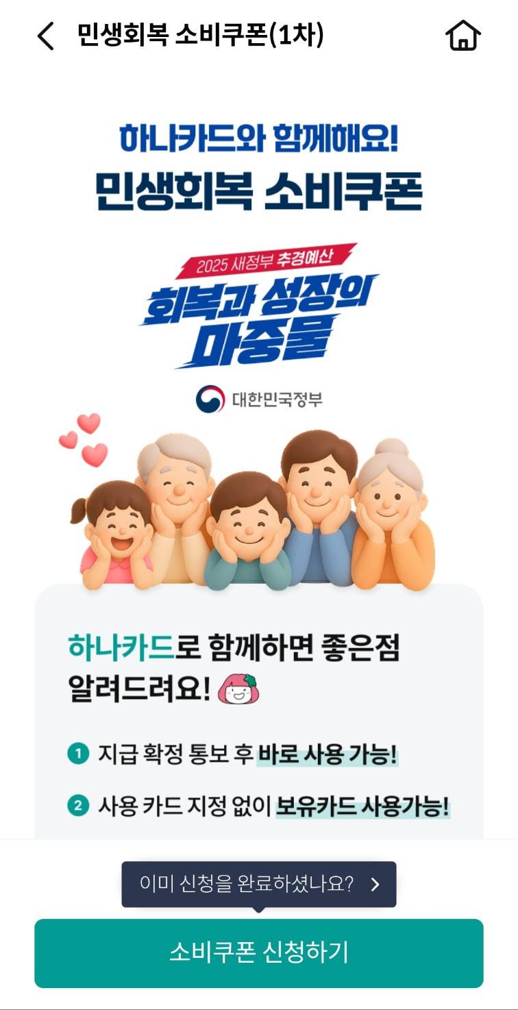 하나은행 민생회복 소비쿠폰 신청하기