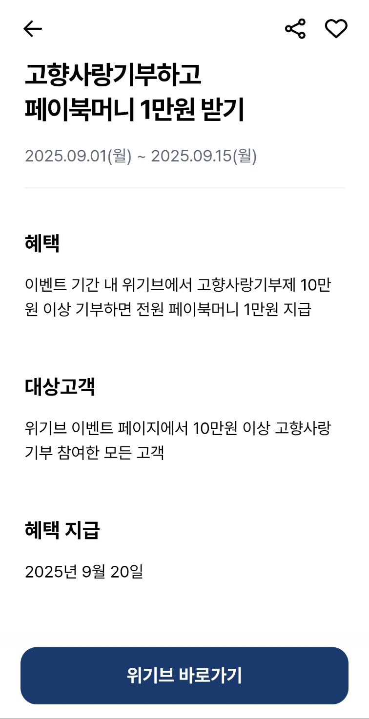 기부가 된다면 20일에 페이북 머니 1만원이 들어온다고 하네요.