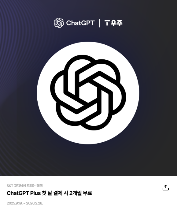 T 우주 | ChatGPT Plus 첫 달 결제 시 2개월 무료