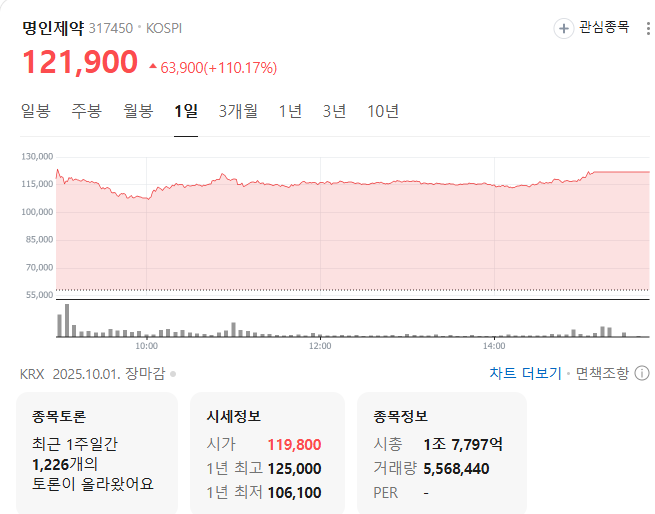 오늘 명인제약의 상장일이었는데요.