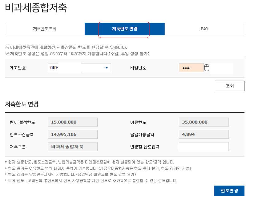 미래에셋증권 비과세 종합저축 한도 증액하기