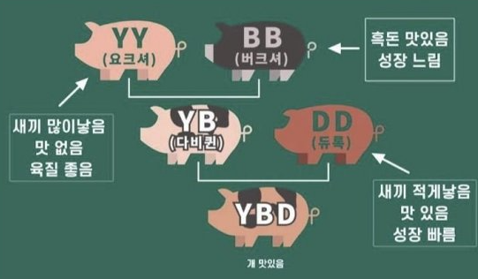 YBD는 요크셔(Y), 버크셔(Berkshire, B), 듀록(D)의 조합으로, ‘랜드레이스’ 대신 ‘버크셔’를 사용한 조합입니다.