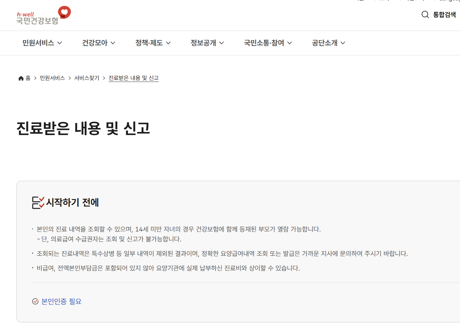 내 진료정보 열람 < 조회·신청 < 건강보험심사평가원