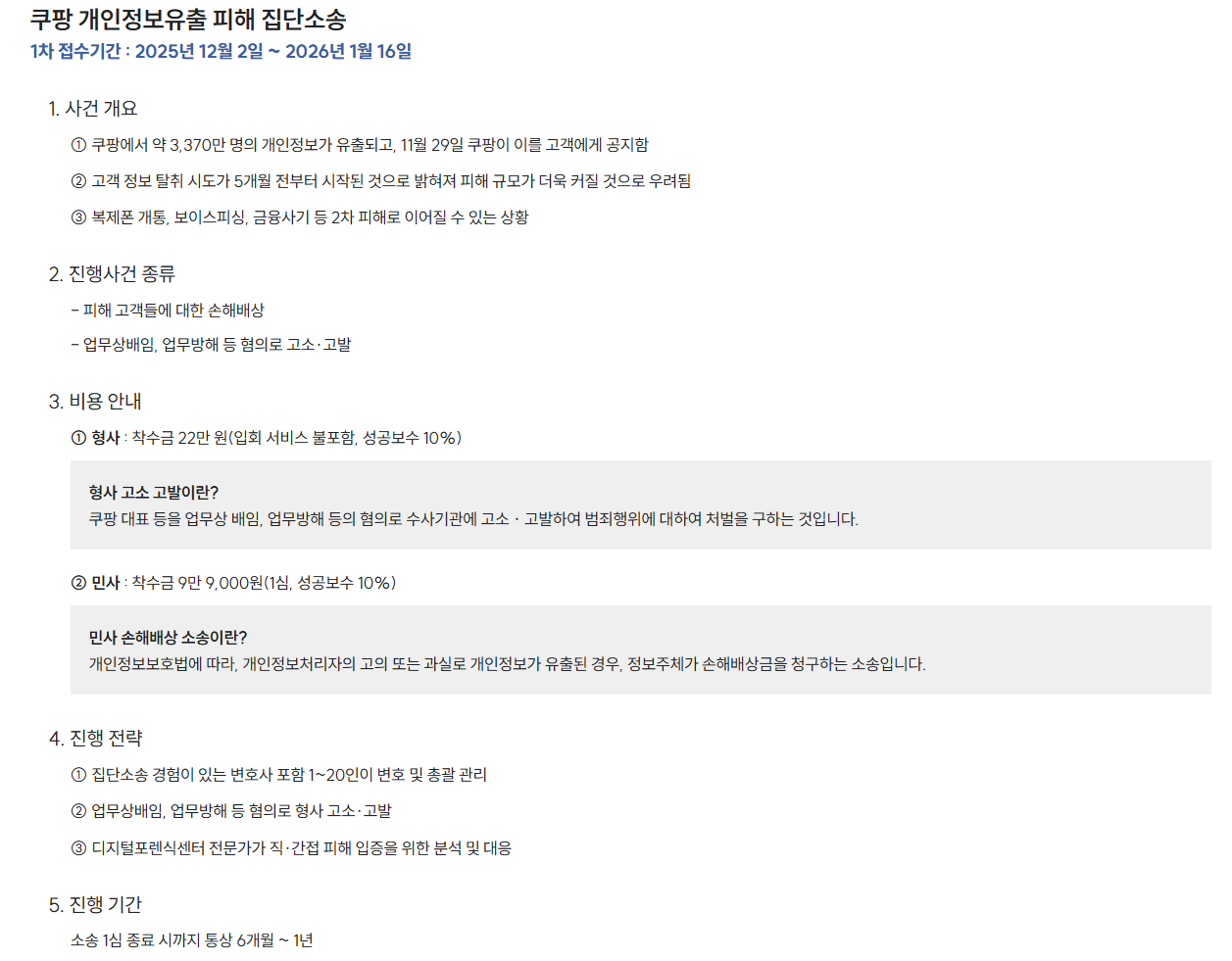 쿠팡에서 개인정보 해킹 관련하여 소송을 참여할 수 있습니다.