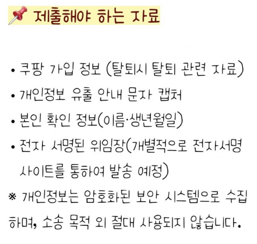 현재 개인정보 유출 관련하여 쿠팡 집단 소송을 하고 있습니다. 이게 소송 참여 안하면 돈을 못받기 때문에 꼭 소송에 참여하시기 바랍니다.