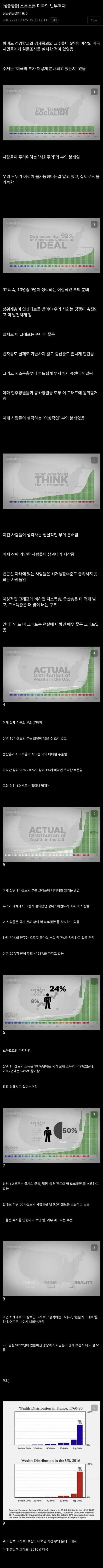 사람들에게 "가장 이상적인 부의 분배는 무엇인가?"라고 물었을 때, 92%의 미국인(민주당, 공화당 지지자 불문)이 선택한 그래프입니다.
