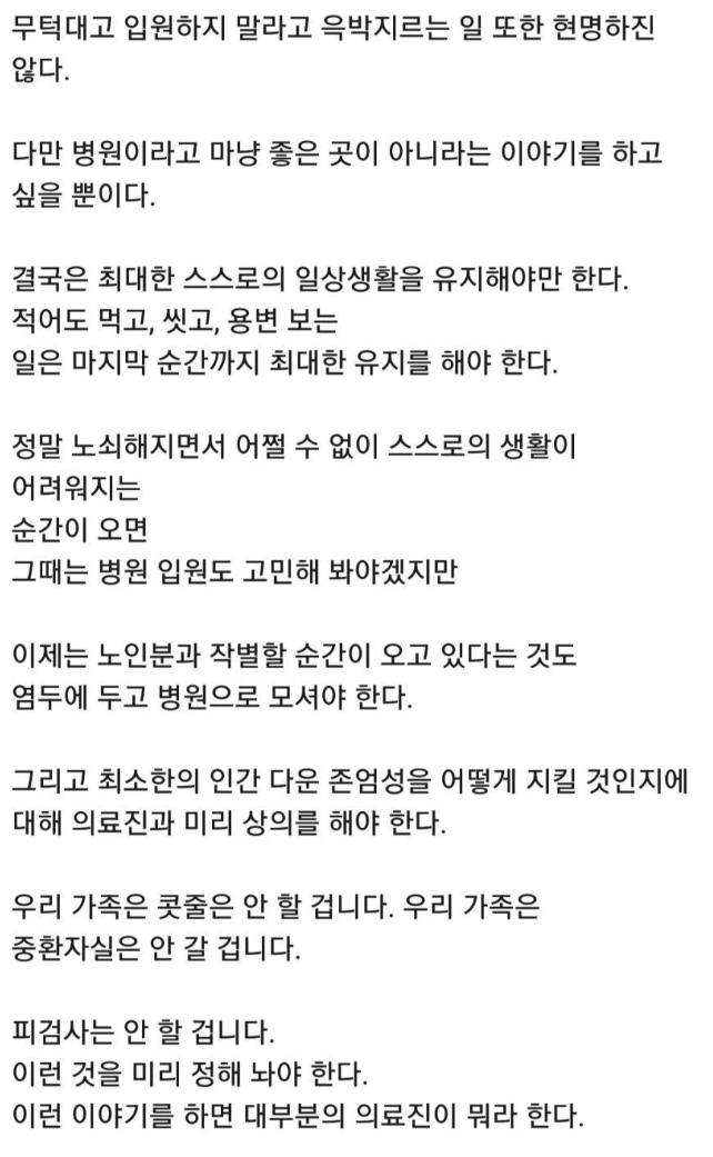 의사들이 이 글을 통해 전하고자 하는 메시지는 "무조건 입원하지 말라"는 뜻이 아닙니다.