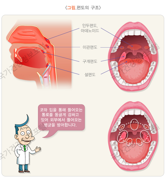 편도선은 입과 코로 들어오는 항원에 대해서 반응을 하고, 주로 점막의 표면을 방어하기 위해 항체를 만들어