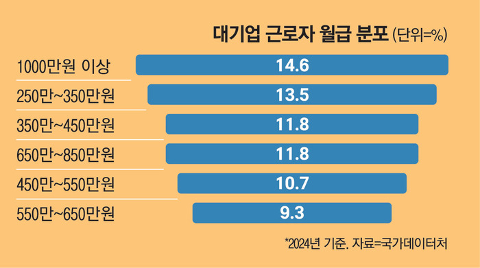 1. 대기업은 "월 1000만 원 이상이 가장 흔한 구간"