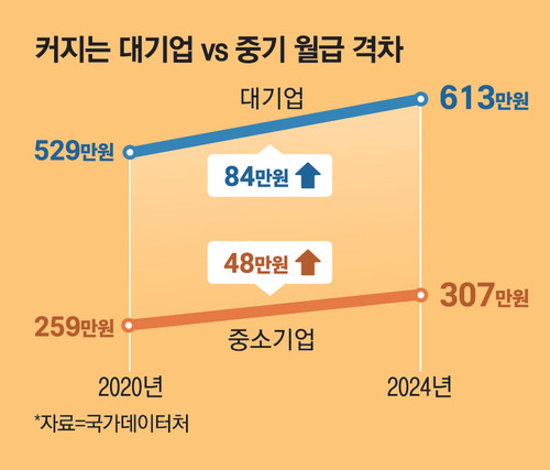 반면 중소기업 일자리의 월평균 소득은 307만 원에 그쳤습니다. 대기업과의 격차는 306만 원으로, 통계 작성 이래 가장 큰 폭으로 벌어졌습니다.