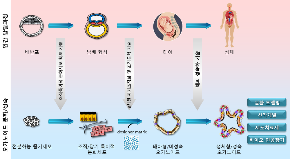 이 오가노이드는 배아줄기 세포 또는 성체 줄기세포로부터 만들어진 모델로 실제 장기의 기능을 할 수 있는 분화된