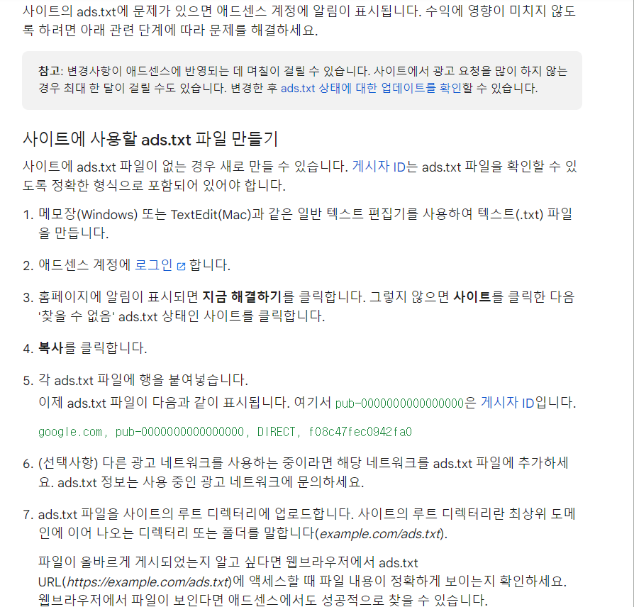 현재 ads.txt 파일을 찾을 수 없음이라는 메시지가 나오는데요.