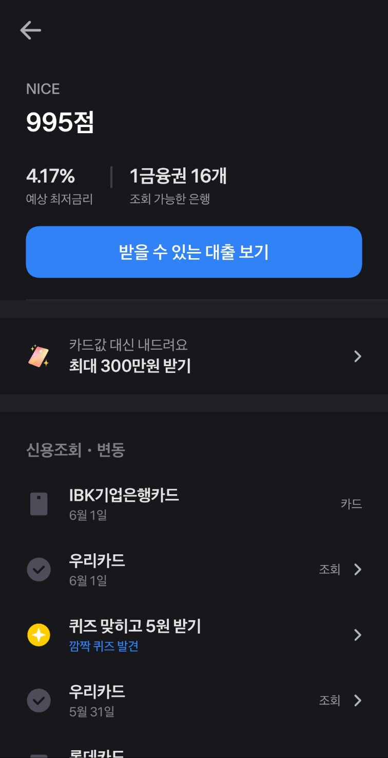 그러면 내 신용조회/변동 사항을 한눈에 알 수 있는데요.