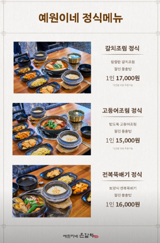 메뉴는 이름처럼 갈치조림이 있고, 고등어조림, 그리고 전복뚝배기가 있습니다.