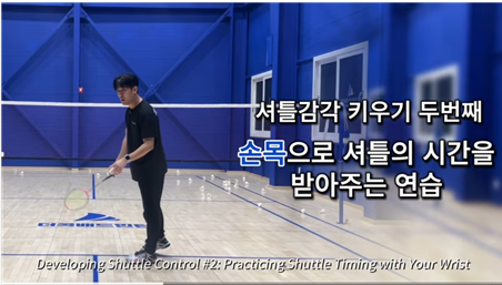 두번째 손목으로 셔틀의 시간을 받아주는 연습. 결국 배드민턴은 손목힘을 쓰는 것인데요.