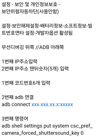 그리고 그 이후에 아래 명령어를 치면 무음 카메라가 됩니다.