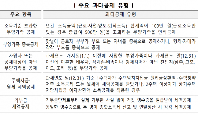 연말정산 주요 과다 공제 유형