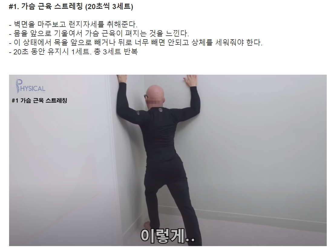 그리고 이것 뿐만 아니라 벽면에서 하면 좋은 것은 가슴 근육 스트레칭도 있습니다.