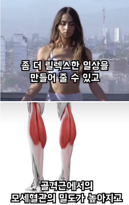 그 결과 좀더 안정적인 일상을 만들어주고, 골격근에서의 모세혈관의 밀도가 높아진다고 합니다.