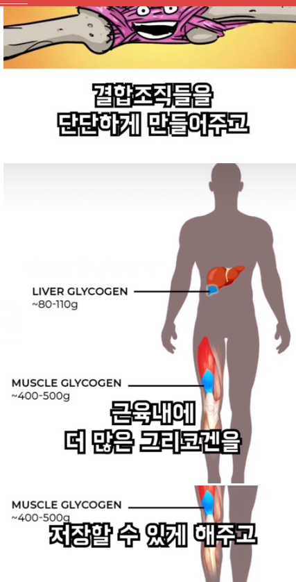 결합 조직을 튼튼하게 하며 근육내에 더 많은 그리코겐을 저장할 수 있게 됩니다.