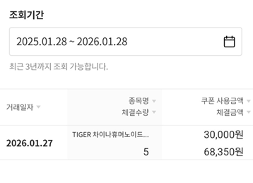 주식 주문후에 다음날 1Q쿠폰에서 확인해보시면 아래처럼 쿠폰이 3만원 사용되었다고 뜹니다.