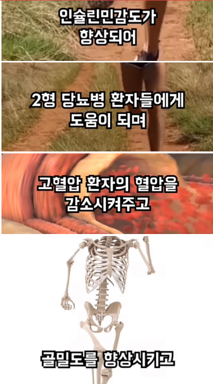 인슐린 민감도가 향상되어, 당뇨병 예방은 물론, 고혈압 환자의 경우 혈압을 감소시키게 됩니다.