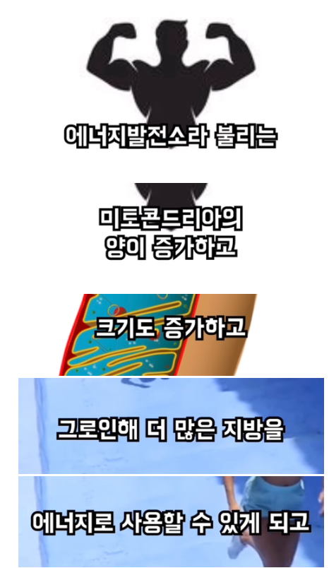 그 뿐만 아니라 미토콘드리아의 양이 증가함으로써, 더 많은 지방을 에너지원으로 사용할 수 있습니다.