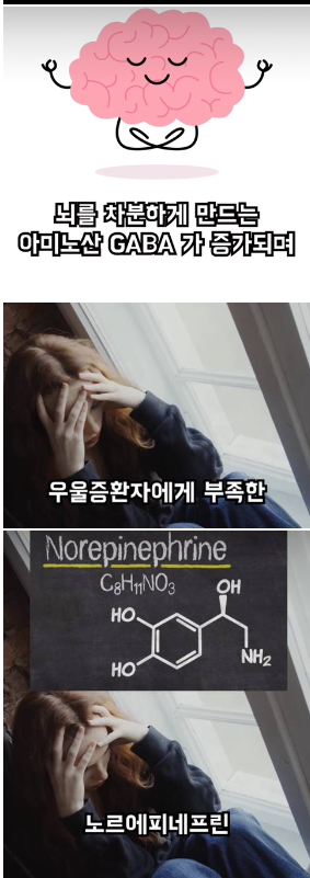 뇌를 차분하게 만드는 아미노산 GABA가 증가되며 우울증 환자에게 부족한