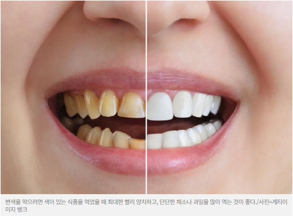이런 음식을 자주 먹지 않는데도 이가 누렇다면 치아 구성 때문일 수 있습니다.
