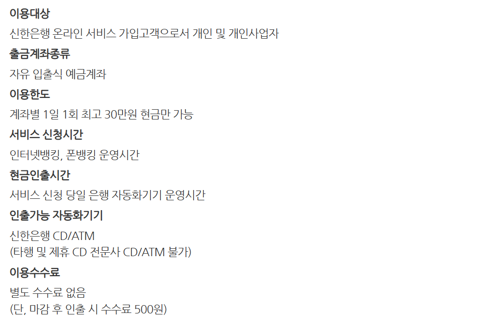 자동화기기(CD/ATM)를 사용하여 소액의 현금을 출금하는 1회성 서비스를 말합니다.