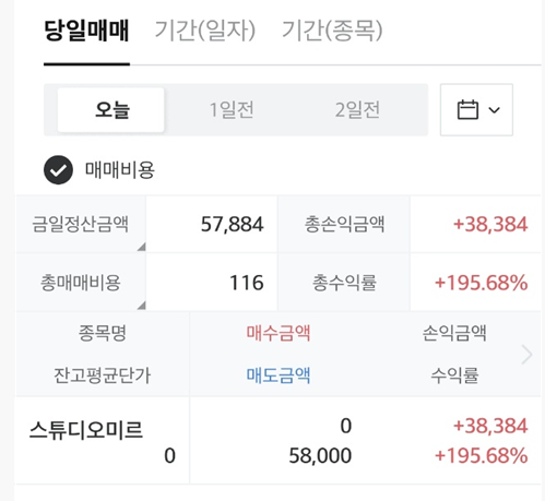 매매 비용 등을 제외하고 38384원의 이익을 얻었는데요.