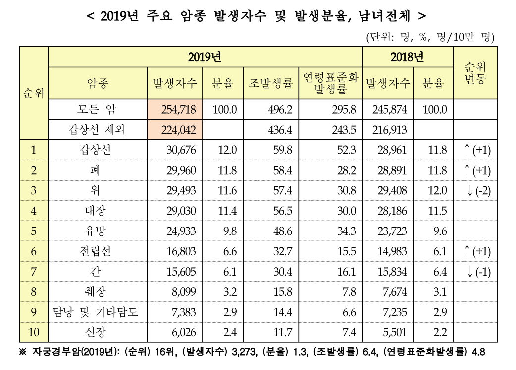 이번 통계에 따르면 대한민국의 암 발생 순위는 아래와 같습니다.