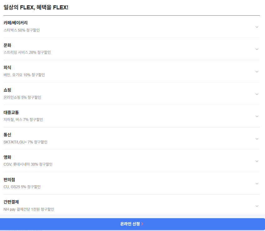 스타벅스 50%, 스트리밍 20% 할인이 메인 할인 혜택입니다.
