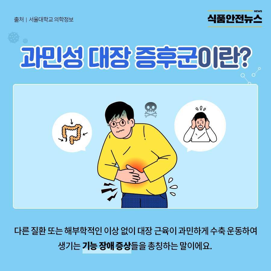 일반적으로 과민성 대장 증후군은 대장의 감각이 민감해져 변을 자주 본다던지 설사 또는 무른 변상태가 지속되거나