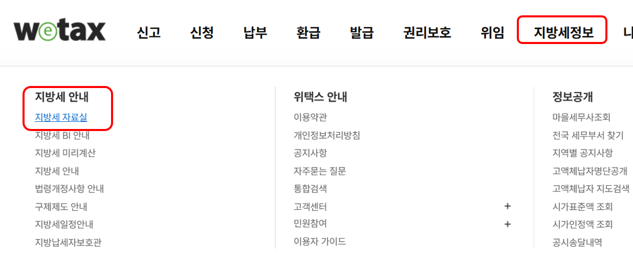 먼저 위택스 - 지방세 정보 - 지방세 자료실에 가면 환급청구서가 있습니다.