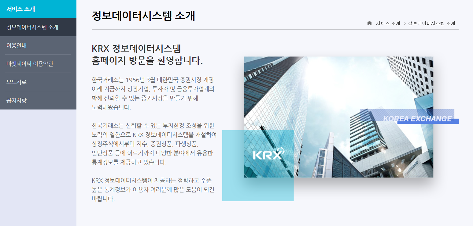 즉 KRX 정보데이터 시스템은 주식 거래에 대한 거의 모든 정보를 제공하는 사이트인데요.